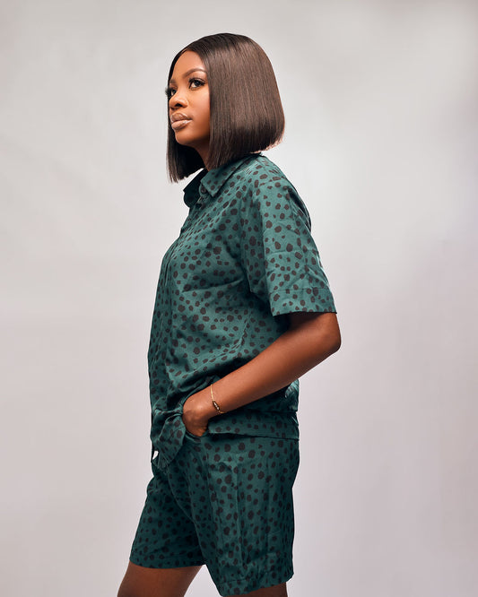 Agyapa Silk Loungewear Top and Shorts Set with pockets