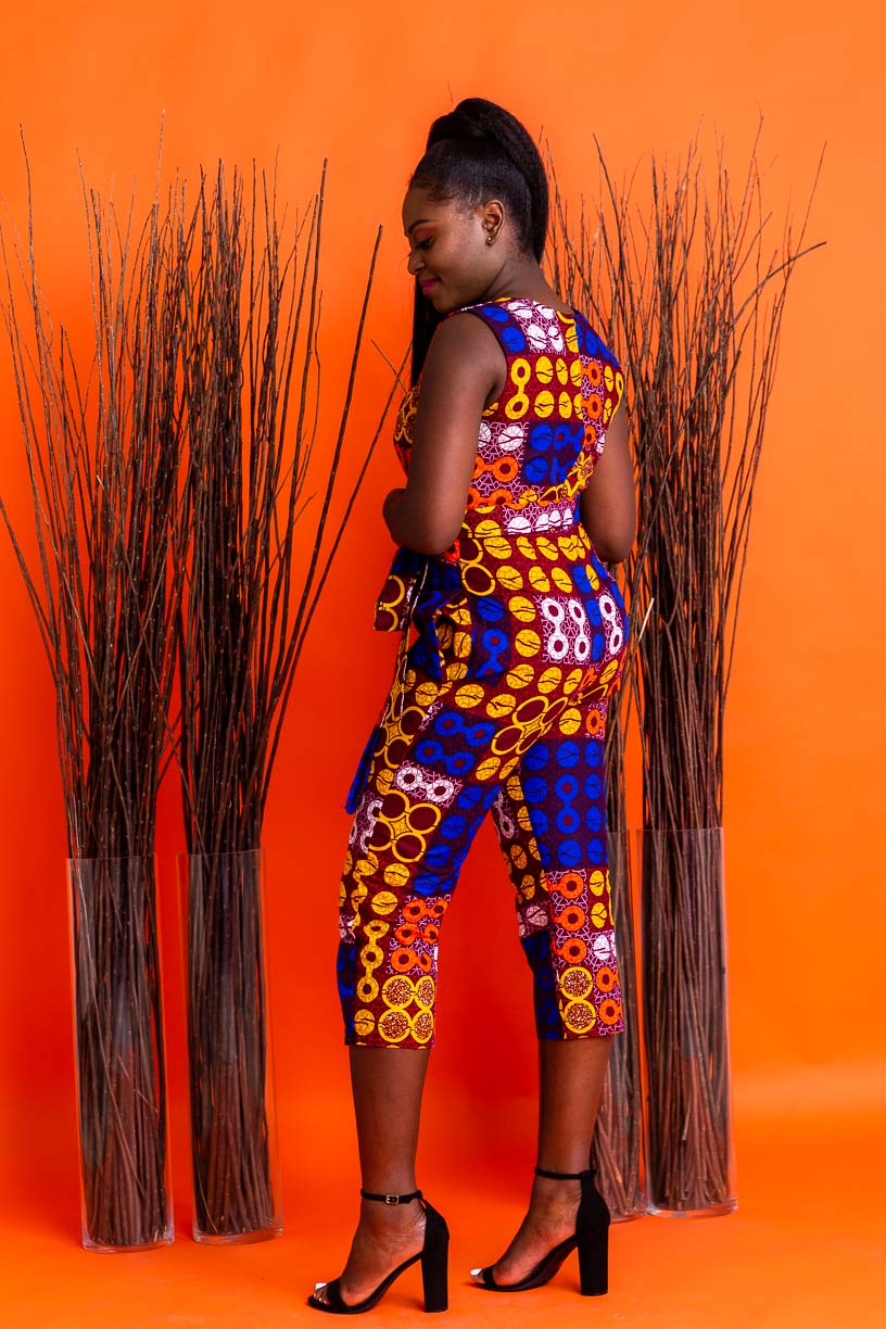 Ankara sleeveless Jumpsuit fit for all occasions. Add a belt and shirt to complete the look.