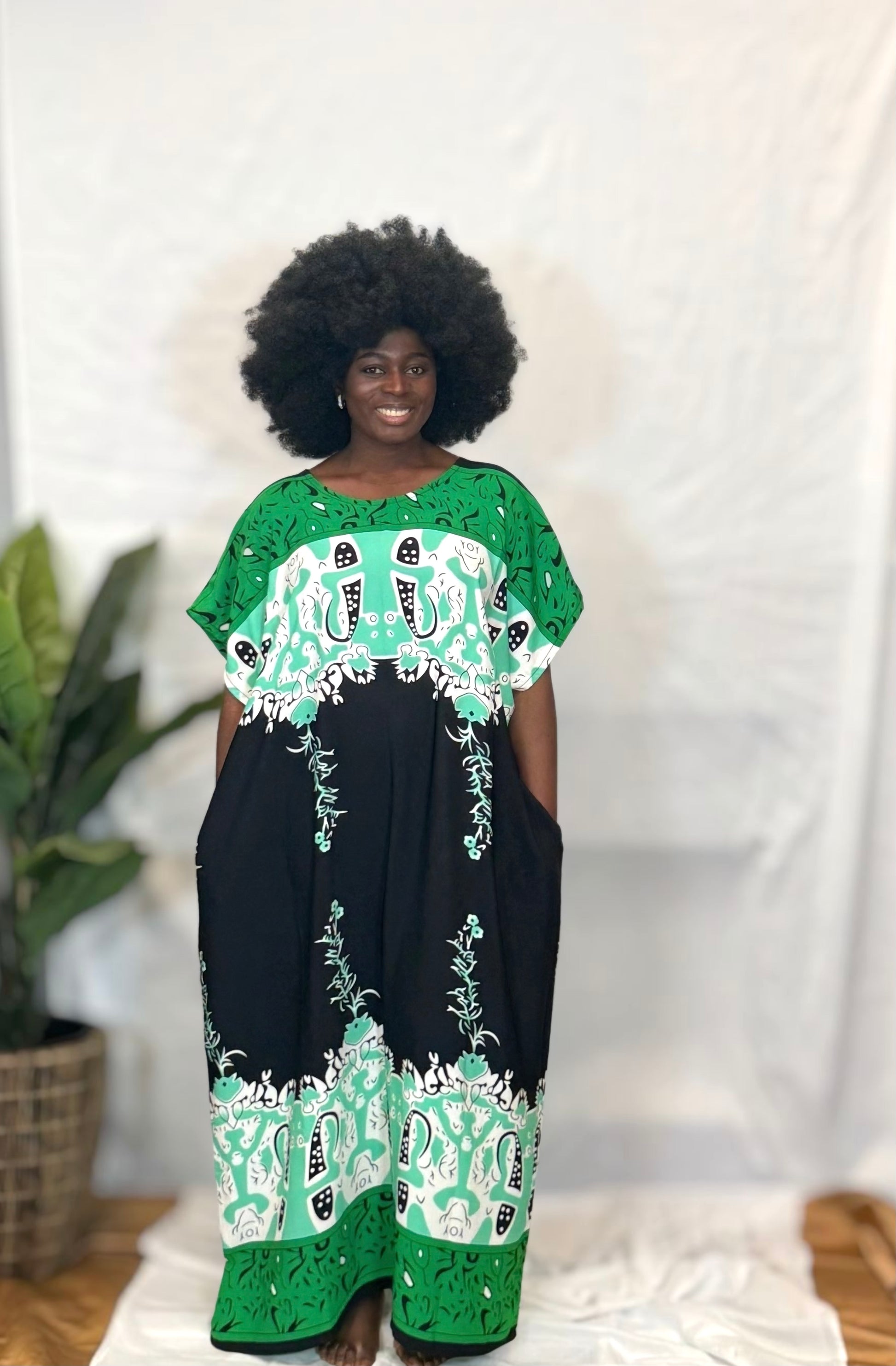 Go ran errands wearing our African bubu dress, dress up for a comfortable look outside or lounge indoors with this beautiful kaftan.