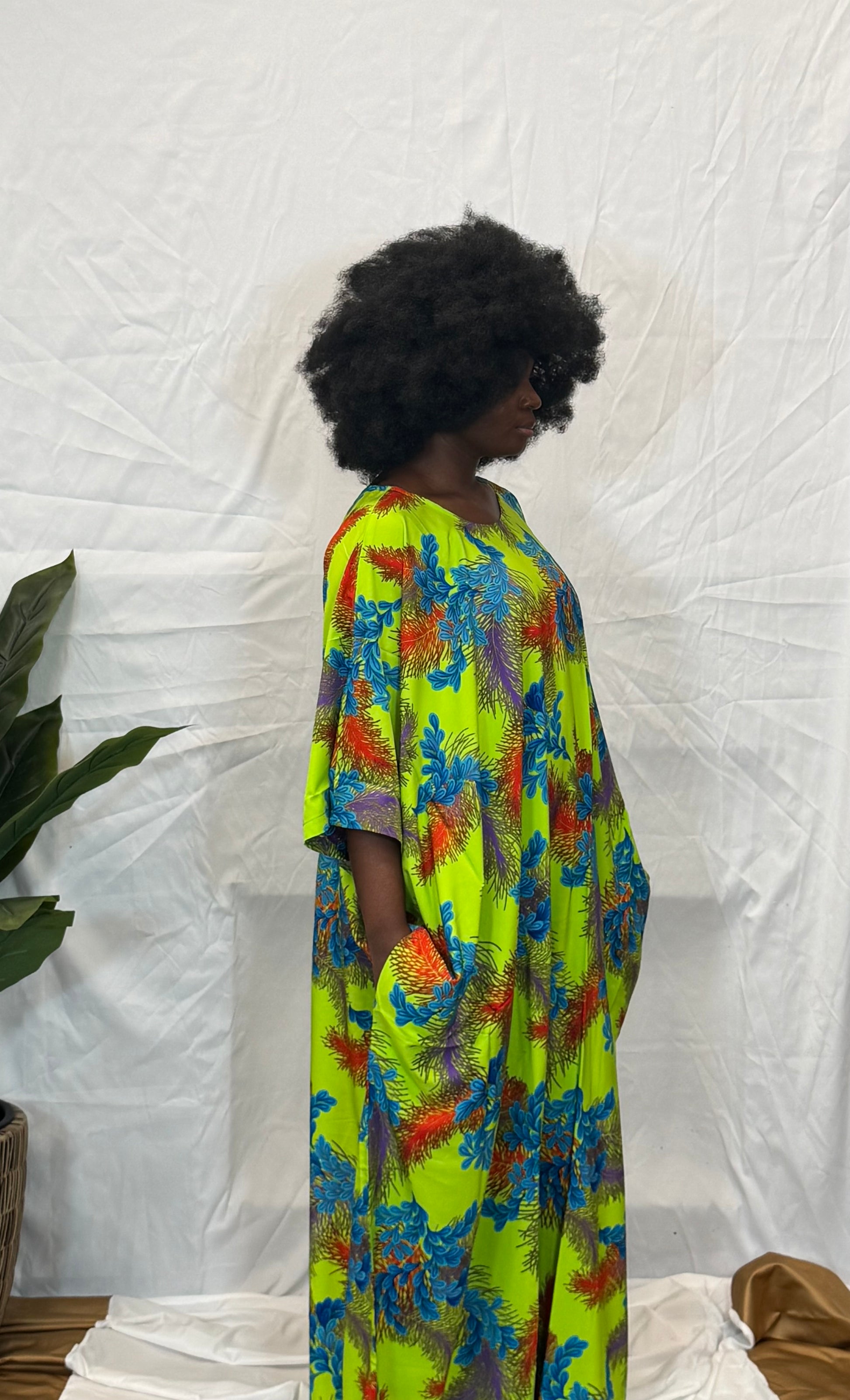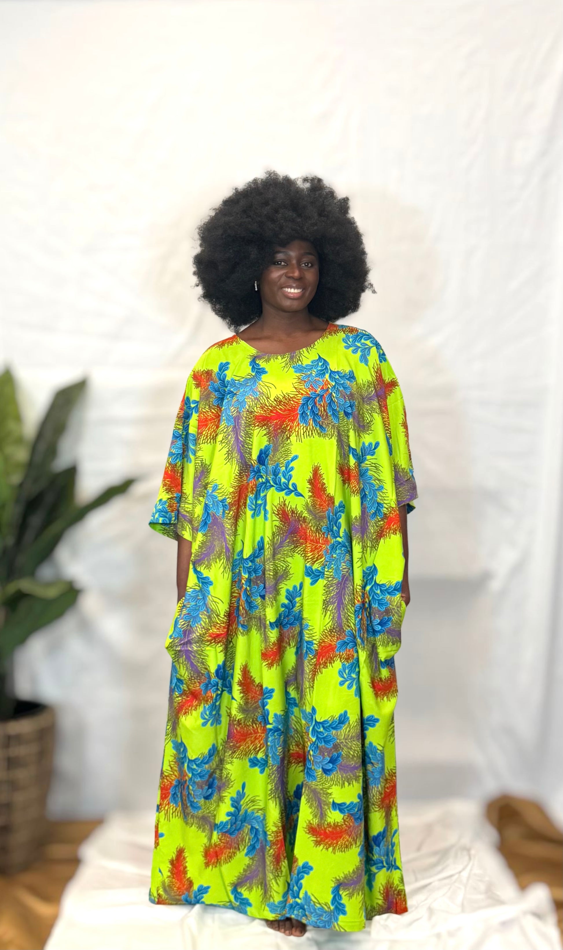 Go ran errands wearing our African bubu dress, dress up for a comfortable look outside or lounge indoors with this beautiful kaftan.