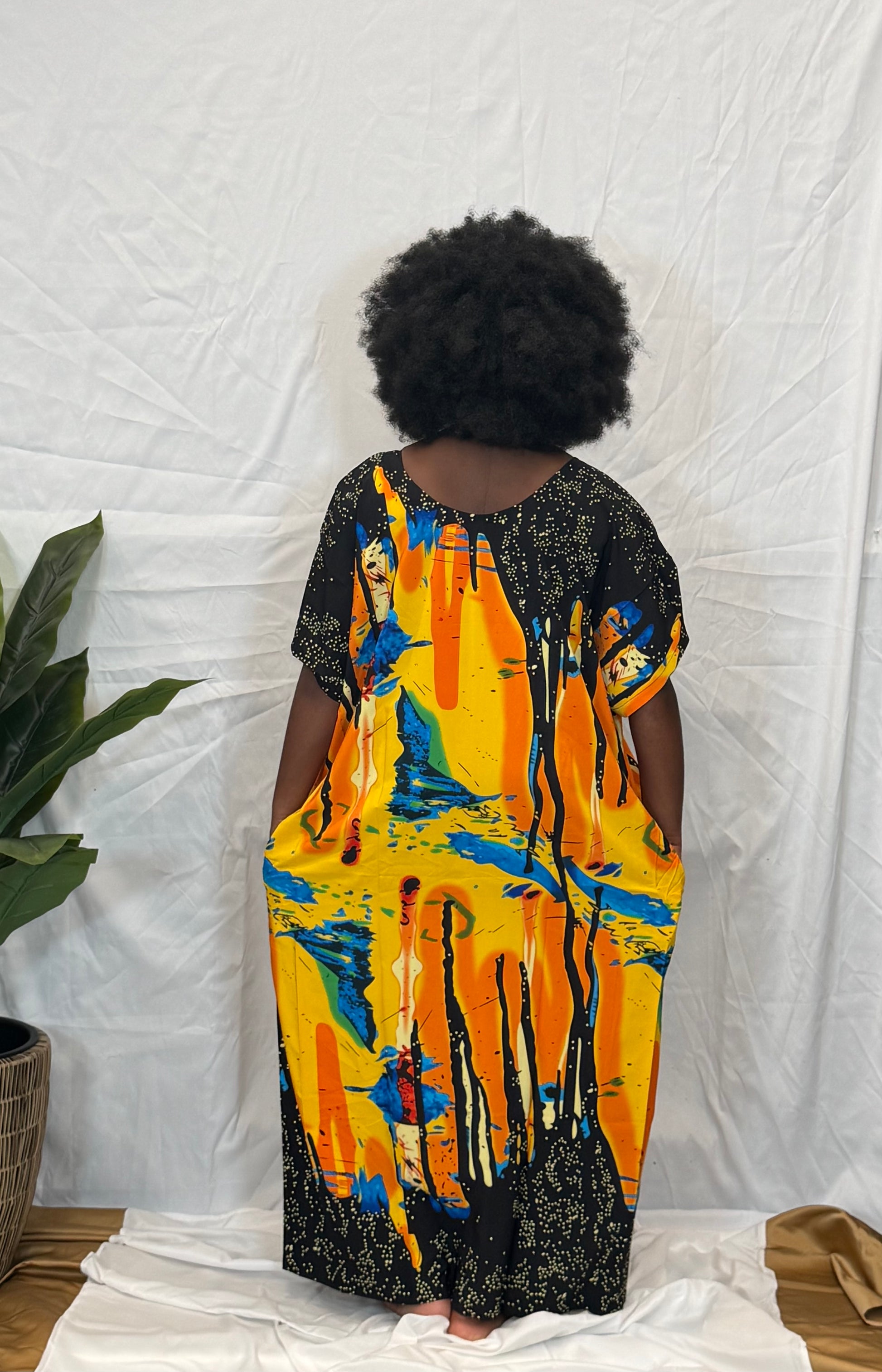 Go ran errands wearing our African bubu dress, dress up for a comfortable look outside or lounge indoors with this beautiful kaftan.