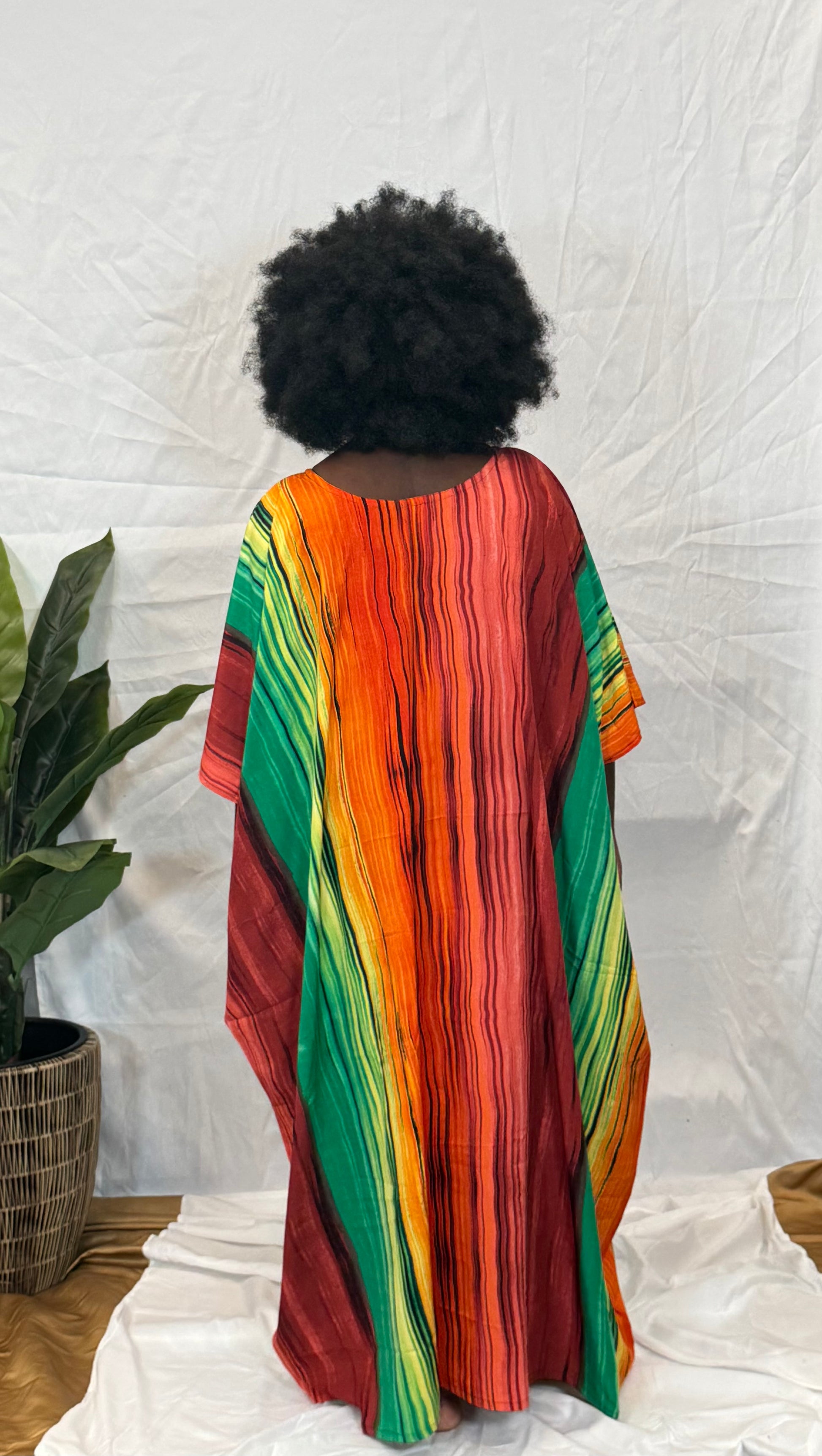 Model wears dress size M/L and is wearing S-L in the kaftan dress shown. Model is 5’10