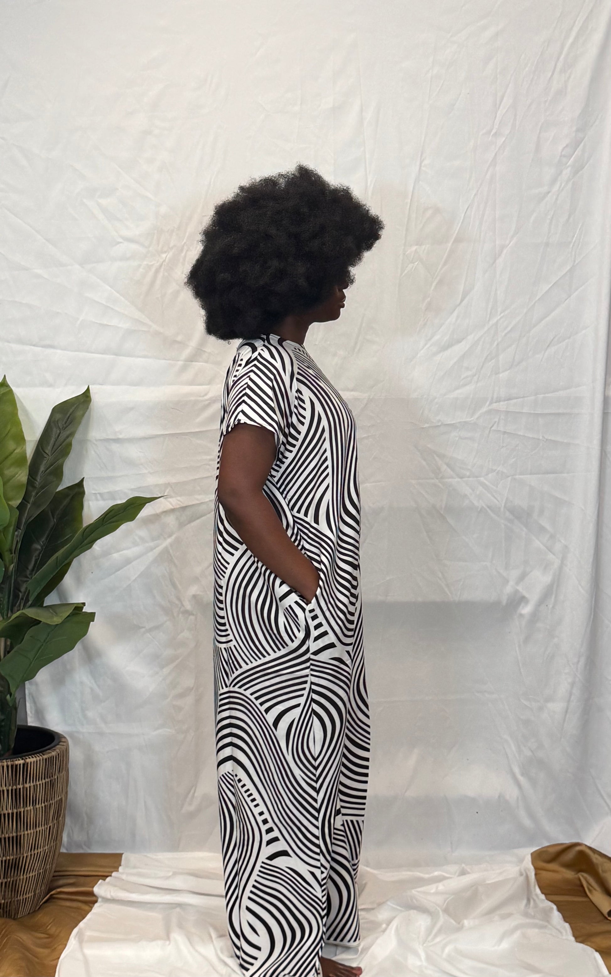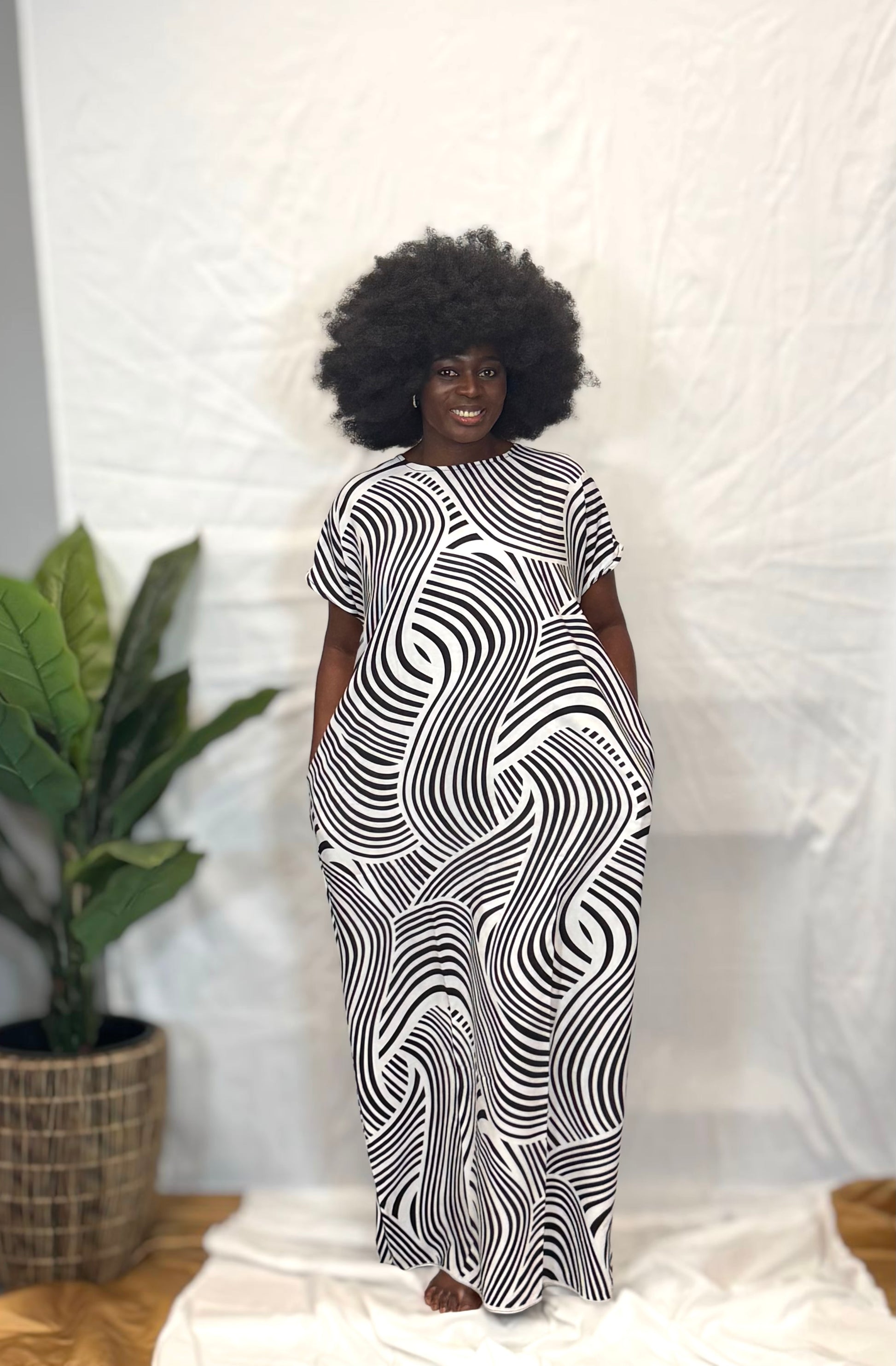 Model wears dress size M/L and is wearing S-L in the kaftan dress shown. Model is 5’10