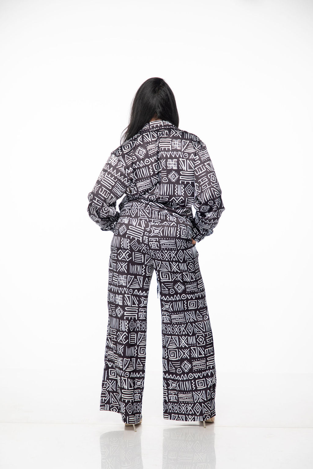 Enjoy lounging around the house or stepping out in this 2-piece print set featuring side pockets on the pants, comfortable waistband and a silhouette design that can be dressed up or down.