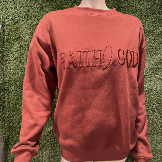 Faith In God Embroidered Unisex Fleece lined crewneck Sweatshirt- Brown